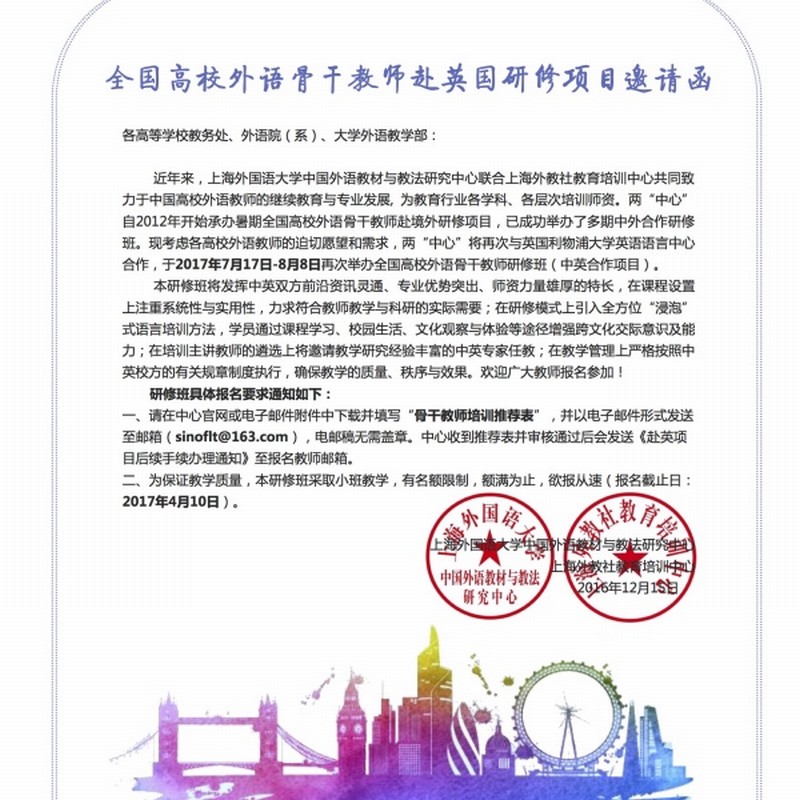 项目概况--2017年全国高校外语教师赴英国研修项目